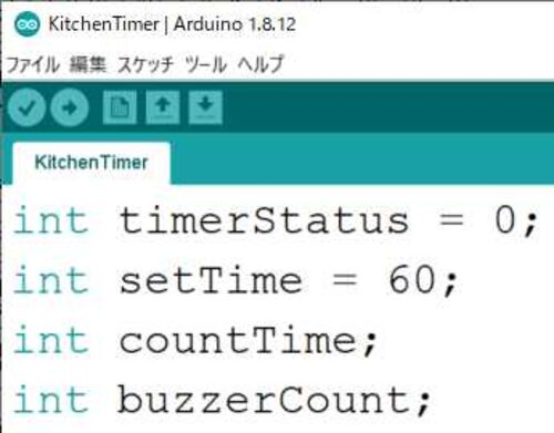 必要なものは全部そろったので、Arduinoでキッチンタイマーを作ってみましょう。まずはスケッチの骨組みから!!